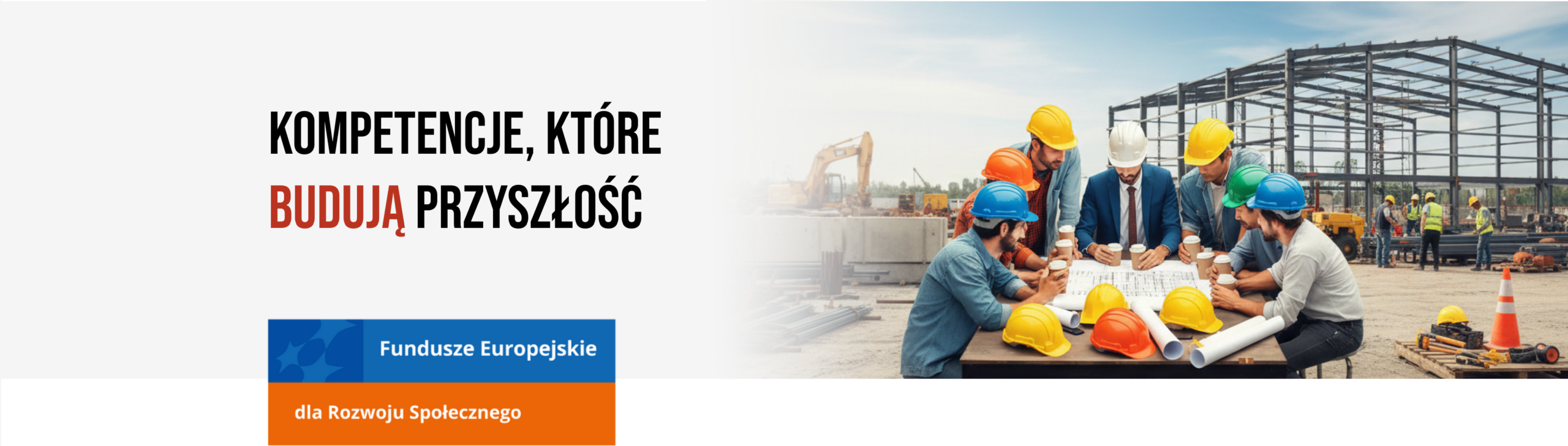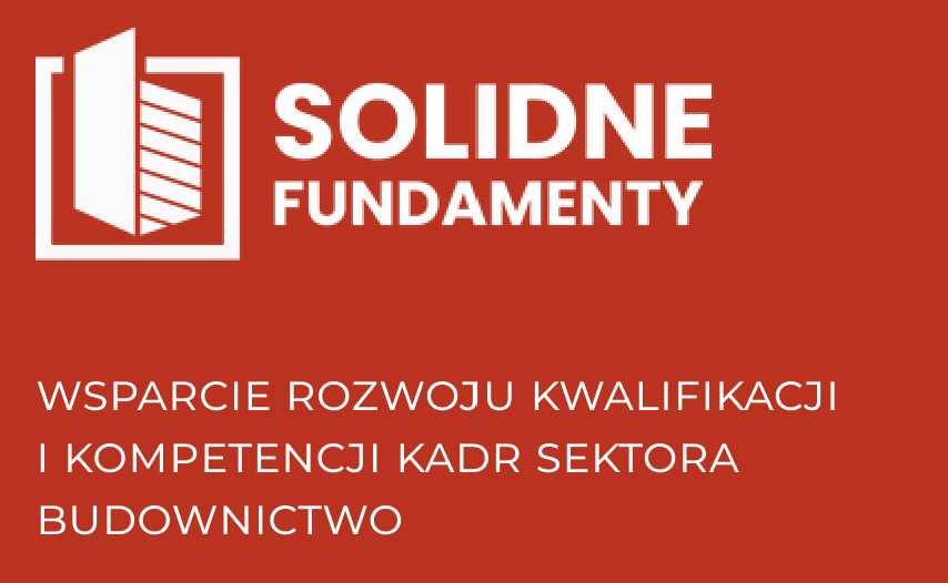 Projekt Solidne fundamenty – wsparcie rozwoju kwalifikacji i kompetencji kadr sektora Budownictwo jest współfinansowany ze środków Unii Europejskiej w ramach programu Fundusze Europejskie dla Rozwoju Społecznego 2021-2027 współfinansowanego ze środków Europejskiego Funduszu Społecznego Plus, priorytet I. Umiejętności; Działanie 01.03 Kadry nowoczesnej gospodarki